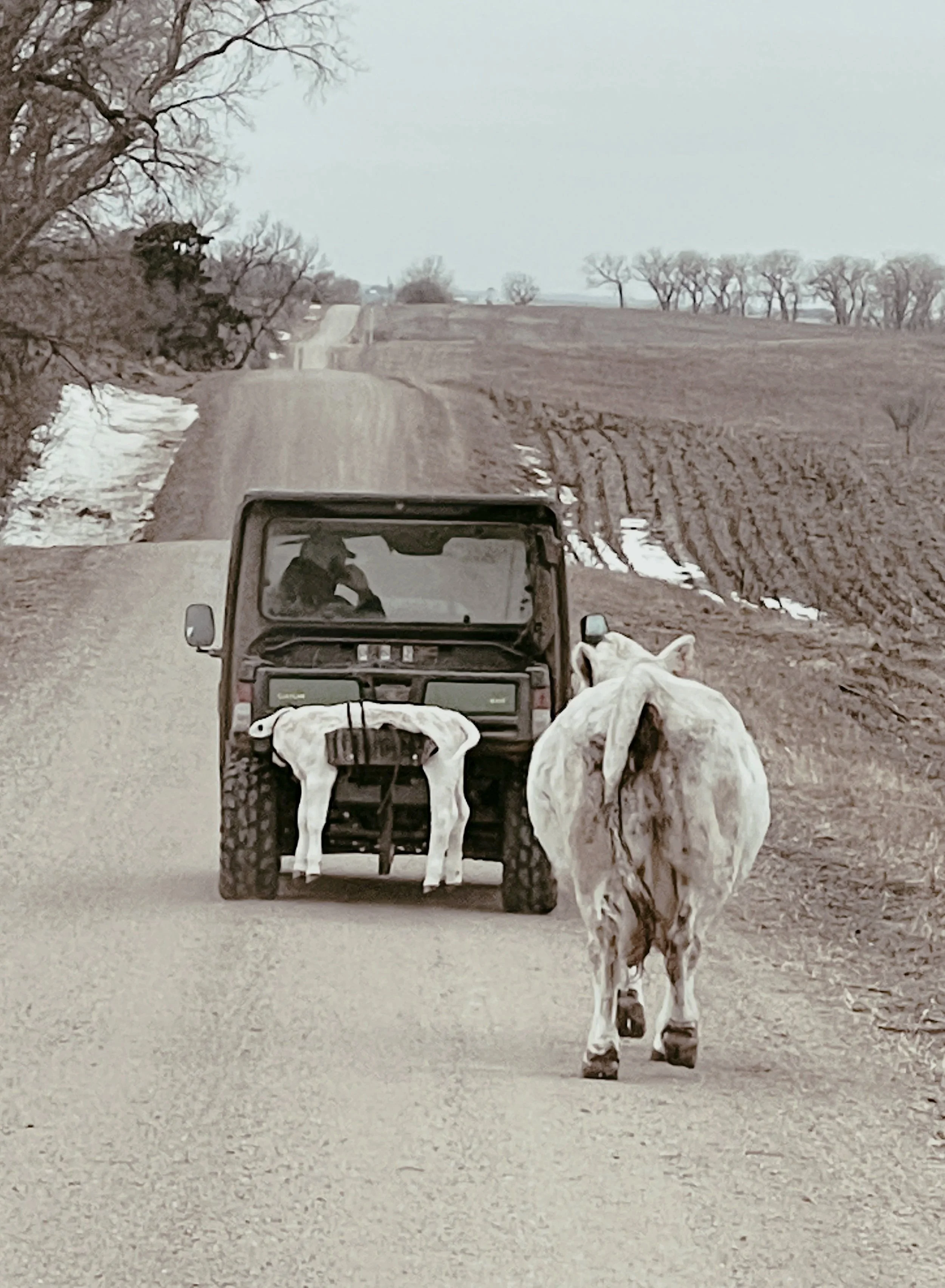 The cradle attachment allows for safely hauling a calf while encouraging the cow to trail naturally.